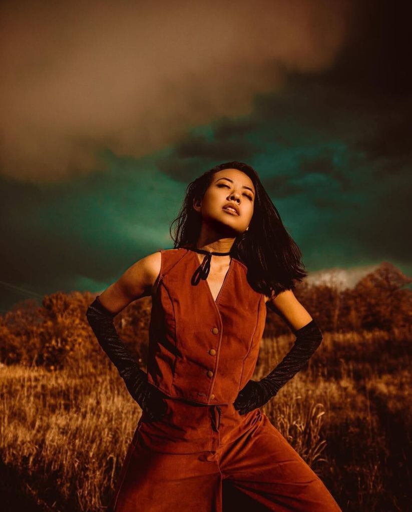 note: her adventurous spirit and active physicality allows fashion designers to display their garments in full range movements